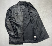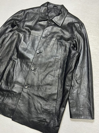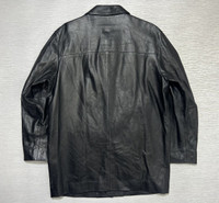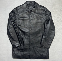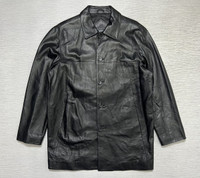 Balenciaga - Vintage - 1997 - Button Up Leather Coat Tagged Size: 3 or Large Gently Used Good Condition *Sign of Use(Creases. Scratches.) Measurements in Inches(Laid Flat): Shoulders: 18” Width: 21” Sleeve Length: 22” Length: 30” Details: - The House of Balenciaga was brought back to life in 1997 by Nicolas Ghesqhuière, whose uncanny talent for proportion and cut defined fashion for much of the 2000s. Designed in an era when high fashion spike to popularity. This iconic piece features the "BB" Stamp Signature Logo at the lower left front part, Two Front Pockets and Inside Lighter Pocket. Made from Italian Calf Leather. •Material: Shell: 100% Italian Leather. Lining: 100% Polyester. •Button Up Enclosure with Balenciaga engraved logo
