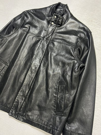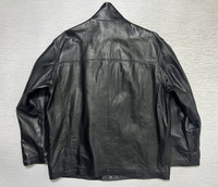 Balenciaga - Vintage - 1997 - Full Zip Leather Half Coat Tagged Size: 6, fits Extra Large Gently Used Good Condition *Sign of Use(Creases. Scratches.) Measurements in Inches(Laid Flat): Shoulders: 20” Width: 23” Sleeve Length: 24” Length: 28” Details: - The House of Balenciaga was brought back to life in 1997 by Nicolas Ghesqhuière, whose uncanny talent for proportion and cut defined fashion for much of the 2000s. Designed in an era when high fashion spike to popularity. This iconic piece features the "BB" Stamp Signature at the lower front part, Two Front Slant Pockets, Adjustable Snap Button Cuff and Inside Lighter Pocket. Made from Italian Calf Leather. •Material: Shell: 100% Italian Leather. Lining: 100% Polyester. •Hardware: YKK Zippers