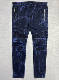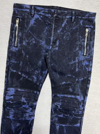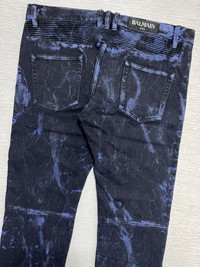 Balmain - Accordion Marble Pattern Stretch Biker Jeans Size 34 Gently Used Good Condition Normal Sign of Use Flaws: Slightly faded. Dirts. Lints. No Inclusion Measurements in Inches(Laid Flat): Waist: 18” Front Rise: 10” Hip: 19” Thigh: 10” Length: 39.5” Knee: 7” Inseam: 29.5” Leg Opening: 6”