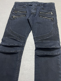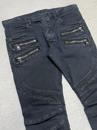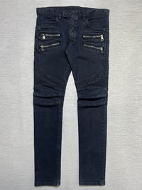 Balmain - Double Zip Detailed Biker Jeans Size 31, can fit up to 34 Gently Used Good Condition Normal Sign of Use Measurements in Inches(Laid Flat): Waist: 17” Front Rise: 10” Hip: 17.5” Thigh: 10” Length: 41” Knee: 7” Inseam: 31.5” Leg Opening: 6”