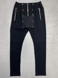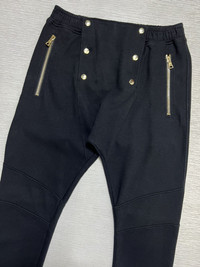 Balmain - Gold Hardware Biker Sweatpants Size Small, fits 30 Gently Used Good Condition Normal Sign of Use No major flaws, just needs cleaning No Inclusion Measurements in Inches(Laid Flat): Waist: 15” Front Rise: 14” Hip: 19” Thigh: 10” Length: 42.5” Knee: 7” Inseam: 30” Leg Opening: 6”