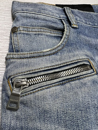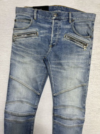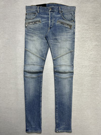 Balmain - S/S ‘21 - Embossed Logo Skinny Jeans Size 30 Gently Used Good Condition Normal Sign of Use Flaws: The pull tab of the zipper of the left pocket has been replaced. Has washable dirts. Lints. No Inclusion Measurements in Inches(Laid Flat): Waist: 16” Front Rise: 10” Hip: 17” Thigh: 9.5” Length: 42” Knee: 6.5” Inseam: 32.5” Leg Opening: 5.5”