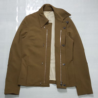 Carol Christian Poell Srl Autumn-Winter ’96-’97 Ref. 0170 Wool Overlock Jacket - Poell’s reverence for textiles and their source is made evident in numerous collections, where fabrics seem to take on a life of their own after being subjected to numerous dyeing techniques, distressing and unique treatments. This work style jacket is done in wool and synthetic blend fabrication. It features a Fanged Collar, Interior Riri Zip Pockets, Double Riri Zips and Over lock buttons to fasten body and cuffs and two pockets on the lower front part. Fits true to size and is much easier to wear than the leather versions. Tagged Size: 46 Color: Beige Condition: 9/10(No major flaws considering its age. Please refer to the detailed pictures I posted.) Material: Composition – 57% Nylon, 30% Wool, 10% PC, 3% Elastane Lining – 95% Nylon, 5% Lycra Made In: Italy Measurements in Inches(Laid Flat): Shoulder Width: 16" Width(Armpit-to-Armpit): 18" Sleeve Length: 26" Length: 25.5” Manage your expectation and buy with confidence. Take your measurements and know your size because Returns/Refunds are not allowed. Come correct all the time. All sales are final. Item will be posted by express shipping (DHL Express) with good tracking record in 1-3 business days after received cleared payment. Expect it to reach you in 3-7 business days only after item been shipped. Please leave your Phone Number and Email Address on the NOTE while making a purchase. Please check my other listings and take advantage of combine shipping rates or special discount. Thank you very much for your visit.