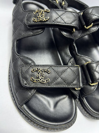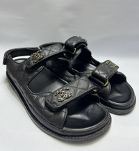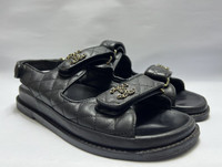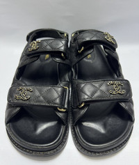 Chanel - Quilted Dad Sandals Size 40C/ 8.5 US/ 6 UK Measurements: Insole: 25cm Outsole: 27cm Used Good Condition *Sign of Use(Sole sep on both pairs. Creases. Dirts. Scuffs. The heels is already resoled.) Inclusion: None Details: - Get the ultimate combination of style and comfort with the Women's Chanel Sandal in Black. Designed with the iconic Chanel elegance, these sandals are perfect for adding a touch of luxury to any outfit. Stay fashionable while stepping out in these must-have shoes from Chanel.