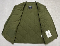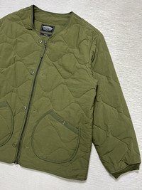 Frizmworks - M1965 Field Liner Jacket 004 Size Extra Large Gently Used Very Good Condition Normal Sign of Use It has a small stain on the left sleeve, not that noticeable when worn. Will send detailed picture upon request. Measurements in Inches(Laid Flat): Shoulders: 21” Width: 24” Sleeve Length: 23” Length: 28” Details: - No modern wardrobe should be without a stylish liner. The Field one from FrizmWORKS nods to the classic M1965 liner used by US military with its collarless silhouette and diamond quilting. Improved season on season, it has contemporary contrast seams and smart elbow patches that elevate the utility look. •70% Cotton, 30% Nylon •2-Way Zip Closure •Button Closure •2 Front Pockets •Ribbed Trims