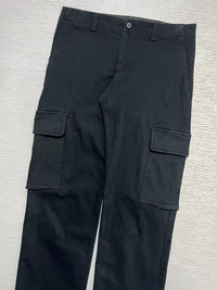 Issey Miyake White Label - Stretchable Cargo Pants Tagged Size: 2, fits 28 Gently Used Good Condition *Sign of Use(Very minor fading. Washable dirts. Lints.) Measurements in Inches(Laid Flat): Waist: 14” Front Rise: 9” Hip: 15.5” Thigh: 10” Length: 34.5” Knee: 7.5” Inseam: 26” Leg Opening: 7”