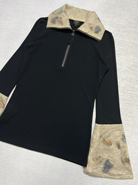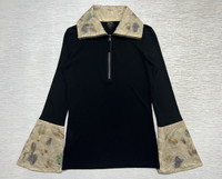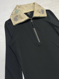 90s JPG Futuristic Feather Design Flared Cuffs Half Zip L/S