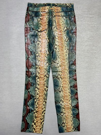 Jean Paul Gaultier - Spring-Summer 2007 - Phyton Snake Skin Trousers Tagged Size: 40(Italy), fits 28-30 Gently Used Good Condition Measurements in Inches(Laid Flat): Waist: 15” Front Rise: 10” Hip: 16.5” Thigh: 10” Length: 41.5” Knee: 7” Inseam: 32” Leg Opening: 6.5”
