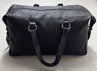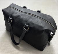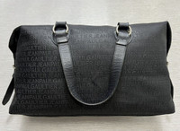 Jean Paul Gaultier - 1990s Typography Embossed Logo Allover Print Duffle Bag Gently Used Excellent Condition considering its age. Normal Sign of Use Flaws: Very minor fading. Dirts. Creases on the leather handles. Lints. Measurements: Height: 24cm Length: 44cm Width: 18cm Details: - Jean Paul Gaultier Typography Logo Allover Pattern. Two Leather Handles with Metal Rings. Zipper Enclosure with Embossed Logo on the Pull Tab. Adjustable Leather Buckles on both sides. One Inner Pocket with Zipper Enclosure with Embossed Logo Pull Tab. Multi Pockets on the inside. Made in Japan.