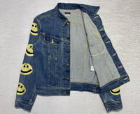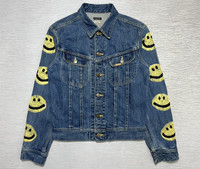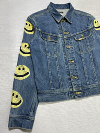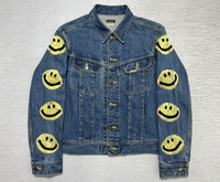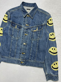 Kapital - 14oz Westerner Long Washed Smiley Denim Jacket Tagged Size: 40 Gently Used Good Condition *Sign of Use/Flaws(A bit dirty, needs cleaning. Minor loose stitch on the smiley patch on the right sleeve.) Measurements in Inches(Laid Flat): Shoulders: 17” Width: 18.5” Sleeve Length: 24” Length: 23”