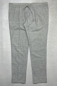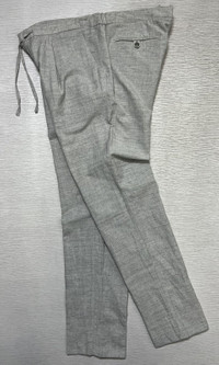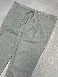 Loro Piana - Flax Virgin Wool Linen Blend Drawstring Trouser Measurements in Inches(Laid Flat): Waist - 20” Front Rise - 11” Hip - 21” Thigh - 12” Length - 42” Knee - 8.5” Inseam - 32” Leg Opening - 7” Details: •Tagged Size: XXL, fits 40 •Color: Light Grey •Condition: 9/10 or better •Material: 51% Flax, 49% Virgin Wool •Made In: Italy