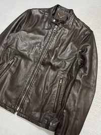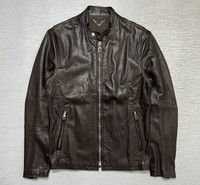 Louis Vuitton - Lamb Leather Rider’s Jacket Tagged Size: 46 Gently Used Good Condition *Sign of Use(Creases. Scuffs.) Measurements in Inches(Laid Flat): Shoulders: 16” Width: 17” Sleeve Length: 24” Length: 25” Details: •Full Zip Louis Vuitton Zipper Enclosure •Two Front Zip Pockets •Two Inner Pockets •Composition: 100% Lambskin. Lining: 100% Cotton. •Made in France