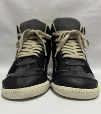 Maison Margiela - Fall-Winter 2013 - High-Top Sneaker Navy Size 41.5 Gently Used Good Condition Normal Sign of Use *Flaws: No Inclusion Details: - Maison Martin Margiela delivers another luxurious item for 2013 fall/winter. Utilizing a blend of textiles, the High-Top Sneaker sees a mix of leather, suede, nubuck and lacquered leather, with its quirky designs spilling onto its outsole. Crafted in Italy, white leather takes over the interior while beige laces contrast. With Margiela’s iconic logo punctuating its padded tongue, the 2013 fall/winter High-Top is another unique offering celebrating. P.S *The buyer should expect that there will be import duties and taxes that you’ll be needing to pay.*
