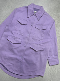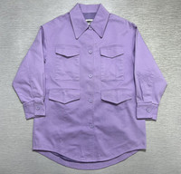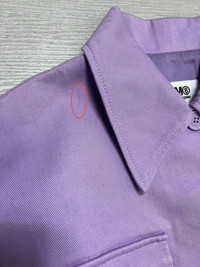Maison Margiela - MM6 - Autumn-Winter 2020 - Oversized Shirt Coat/Jacket Size Extra Small Gently Used Good Condition Normal Sign of Use Flaws: Has yellowish washable dirts on different parts(Both on the Inside and Outside). Lints. Measurements in Inches(Laid Flat): Shoulders: 21.5” Width: 23.5” Sleeve Length: 21” Length:(Front): 34” (Back): 36” Details: - Long sleeve cotton twill coat in purple. Spread collar. Button closure at front. Flap pockets at chest and waist. Single-button barrel cuffs. Shirttail hem. Fully lined. Tonal hardware. Supplier color: Lilac •Composition: Prime Fabric: 99% Cotton, 1% Elastane-Spandex. Lining: 100% Viscose-Rayon
