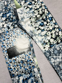 Maison Margiela MM6 - Spring-Summer 2016 - Flower Pattern Patchwork Cropped Pants Size 36, fits 28 Gently Used Excellent Condition Normal Sign of Use Flaws: It has a washable dirt on the lower left leg part. Measurements in Inches(Laid Flat): Waist: 14” Front Rise: 10” Hip: 16” Thigh: 10” Length: 31” Knee: 7” Inseam: 22” Leg Opening: 6”