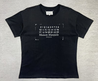 Maison Margiela - Spring-Summer 2025 - Stamp Logo T-Shirt Gently Used Good Condition Normal Sign of Use *Flaws: Pressed marks. Dirts. Lints. No Inclusion Measurements in Inches(Laid Flat): Shoulders: 21” Width: 21” Sleeve Length: 6” Length: 25” Details: - Stamp Logo T-shirt. Color: Washed Black. Washed cotton fabric. Frayed stamp logo at front. Signature 4-stitches at rear. Straight hem. Material: 100% Cotton. Made in Italy.