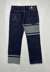 Mastermind Japan - Denim Jeans Size Medium, fits 32 Gently Used Good Condition Normal Sign of Use Flaws: The length is altered. Loose stitch. Slightly faded on some part. Lints. Measurements in Inches(Laid Flat): Waist: 16.5” Front Rise: 10” Hip: 18” Thigh: 11” Length: 36” Knee: 7.5” Inseam: 26” Leg Opening: 7.5”