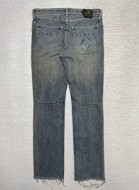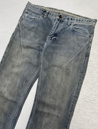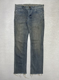 Number (N)ine - Spring-Summer 2007 - Mudwash Distressed Pain Denim Tagged Size: 2 Used Good Condition(8/10) *Sign of Use(Yellowish washable dirts. Scratches. Lints. Shortened Length.) Measurements in Inches(Laid Flat): Waist: 15” Front Rise: 9” Hip: 16” Thigh: 10” Length: 38” Knee: 7” Inseam: 28.5” Leg Opening: 6.5” Details: •Low rise fit •Nice faded wash •Used with some distressing from age and wear •Zip Fly Enclosure •Made in Japan