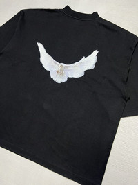 Yeezy - Gap - Engineered by Balenciaga - Dove 3/4 Sleeve Tee Tagged Size: Medium Color: Black Condition: 9/10 Material: 100% Cotton Made In: Vietnam Measurements in Inches(Laid Flat): Shoulder Width: 28” Width: 30” Sleeve Length: 14” Length: 32” Details: - Released as part of the first delivery of the Yeezy GAP x Balenciaga collection, this black Yeezy GAP Engineered by Balenciaga Logo 3/4 Sleeve T-shirt was made with a 100% cotton material and features an oversized fit with a 3/4 sleeve length. The front of this t-shirt features a faded GAP logo and the back features a white dove graphic. Manage your expectation and buy with confidence. Take your measurements and know your size because Returns/Refunds are not allowed. Come correct all the time. All sales are final. Please leave your Phone Number and Email Address on the NOTE while making a purchase. Please check my other listings and take advantage of combined shipping rates or special discounts. Thank you very much for your visit.