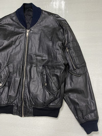 Vintage Kansai Yamamoto “Retail Division” MA-1 Leather Bomber Jacket - Before Issey, Rei, and Yohji there was Kansai Yamamoto, an often overlooked and underrated Japanese fashion designer that was brought to the public eye when David Bowie commissioned the designer to create garments for him as Ziggy Stardust. His first showing debut was in London 1971, a full decade before Rei and Yohji, where he also gained attention from the likes of Elton John and Stevie Wonder and making him the first Japanese designer to show a collection in the fashion capital. Kansai’s designs and prints shared similarities with Asian art, often portraying two-dimensional bold graphics with rich and exuberant colors. The jacket is composed of sheep leather and features an embroidered large “KANSAI Retail Division” at the back part of the jacket. Fits Small-Medium Color: Black Condition: 8.5/10 Flaw: The Label and the Size tag have been removed, a hole beside the letter “K”. Some of the embroidered letterings are starting to detached and It also has several leather cracks on some certain part of the jacket. Please refer to the detailed pictures I posted. Material: Shell-100% Sheep Leather, Lining-100% Polyester Zipper: YKK Measurements in Inches(Laid Flat): Shoulder Width: 20" Width(Armpit-to-Armpit): 21" Sleeve Length: 23" Length: 25” Manage your expectation and buy with confidence. Take your measurements and know your size because Returns/Refunds are not allowed. Come correct all the time. All sales are final. Item will be posted by express shipping (DHL Express) with a good tracking record in 1-3 business days after receiving cleared payment. Expect it to reach you in 3-7 business days only after the item has been shipped. Please leave your Phone Number and Email Address on the NOTE while making a purchase. Please check my other listings and take advantage of combined shipping rates or special discounts. Thank you very much for your visit.