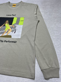 Kanye West - Pornhub Merch - Fall-Winter 2018 - Lena Paul “Top Big Tits Performer” L/S Tee Tagged Size: Medium Gently Used Good Condition *Sign of Use(Washable dirt on the left part of the shoulder.) Measurements in Inches(Laid Flat): Shoulder Width: 20” Width: 22” Sleeve Length: 26” Length: 26” Details: - The Kanye West Pornhub Lena Paul L/S Tee Vapor commemorates West's first official venture into the world of Pornhub. This shirt features an illustration of performer Lena Paul along with her name and award on a neutral tan background. •100% Cotton •Made in U.S.A