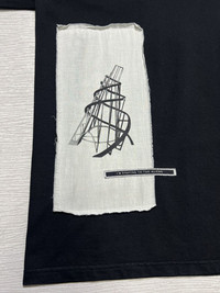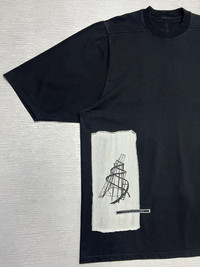 Rick Owens Drkshdw - S/S 19 - Graphic Patch Oversized T-Shirt Size Medium Gently Used Good Condition Normal Sign of Use No Inclusion Measurements in Inches(Laid Flat): Shoulders: 18” Width: 25” Sleeve Length: 15” Length: 33” Details: - Rick Owens' SS19 runway was staged at Palais de Tokyo under gusts of billowing, cobalt blue smoke. Two ideologies informed the collection; the first, the Tower of Babel, for which the season is named, and the second, Tatlin's Tower, a Lenin-commissioned project that was never seen to fruition. Brandishing a graphic patch of the latter along the profile, this oversized T-shirt from Rick Owens DRKSHDW is a pared-back homage to the tent-wearing models in Paris. Black cotton jersey. Made in Italy.