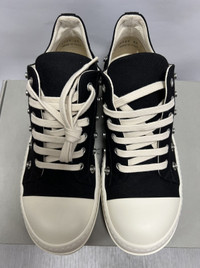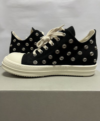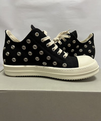 Rick Owens Drkshdw - Spring-Summer 2023 - ‘EDFU’ Eyelet Black Milk Ramones Low Sneakers Size 40 Brand New/Never Worn Details: •Eyelet Embellished Lace Uppers Sneaker •Contrasting Toe Cap •Round Toe •Front Lace Up Fastening •Milk Rubber Soles •Made in Italy