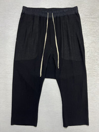 Rick Owens - Fall-Winter 2014 - Wool Drawstring Cropped Pants Gently Used Excellent Condition Normal Sign of Use Flaw: The care tag is already gone. No Inclusions Measurements in Inches(Laid Flat): Waist: 17” Front Rise: 12.5” Hip: 21” Thigh: 11” Length: 36” Knee: 8” Inseam: 22.5” Leg Opening: 8”