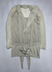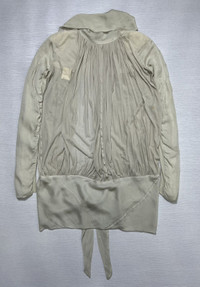 Rick Owens - S/S 07’ - Wishbone Draped Cardigan Tagged Size: 38 Color: Pearl Condition: Used Condition *Flaws: It has a tear/hole on the back part and has several yellowish stain on different parts of the shirt. Material: 100% Silk, Lining: 100% Rayon Made In: Italy Measurements in Inches(Laid Flat): Shoulder Width: 16” Width: 15” Sleeve Length: 25” Length: 31” Manage your expectation and buy with confidence. Take your measurements and know your size because Returns/Refunds are not allowed. Come correct all the time. All sales are final. Please leave your Phone Number and Email Address on the NOTE while making a purchase. Please check my other listings and take advantage of combined shipping rates or special discounts. Thank you very much for your visit.