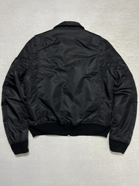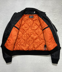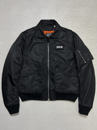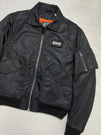 Schott NYC - Recycled Nylon CWU 90s Bomber Jacket Size Medium Gently Used Excellent Condition Normal Sign of Use No flaws No Inclusion Measurements in Inches(Laid Flat): Shoulders: 18” Width: 22” Sleeve Length: 26” Length: 25” Details: - In the 1950s, a new generation of military aircraft required the development of jackets adapted to the new cockpits: the Bomber jacket was born. Lightweight, warm and functional, it became the flagship piece of the 90s and an iconic piece that all generations have come to love. It has been updated with a modernized version that features a 90's inspired fit and a recycled nylon outer fabric. •Embroidered logo with velcro •2 lower pockets with snap flaps & 2 inside snap pockets •Knit waist and cuffs •Orange lining