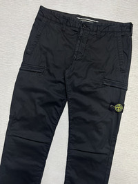 Stone Island - Cotton Twill Cargo Pants Size 30 Gently Used Good Condition Normal Sign of Use *Flaw: The Stone Island Patch is already replaced and the replacement patch is kinda small. No Inclusion Measurements in Inches(Laid Flat): Waist: 15” Front Rise: 9” Hip: 18” Thigh: 10.5” Length: 41” Knee: 7.5” Inseam: 31.5” Leg Opening: 6” Details: - Slim-fit garment-dyed stretch cotton twill cargo pants in black. Mid-rise. Fading throughout. Four-pocket styling. Belt loops at waistband. Darts at knees. Zippered pocket at outseams. Detachable textile logo patch with button fastening at outseam. Zip-fly. Logo-engraved tonal hardware.