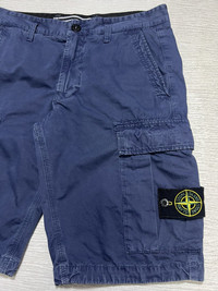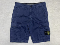 Stone Island - Organic Cotton Cargo Shorts Size 29 Gently Used Good Condition Normal Sign of Use No Inclusion Measurements in Inches(Laid Flat): Waist: 15” Front Rise: 10” Hip: 18” Thigh: 10.5” Length: 20” Inseam: 10” Leg Opening: 8.5” Details: - Concealed Fly and Button Fastening. Belt Loops. Two Side Zip-Fastening Pockets. Rear Welt Pocket. Composition: Lining: 100% Cotton. Outer: 100% Organic Cotton.