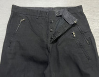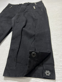 The Viridi-anne - Triple Zip Cinch Back Cropped Trousers Tagged Size: 3 Gently Used Good Condition *Sign of Use(Washable dirts. Lints. Minor uneven fade.) Measurements in Inches(Laid Flat): Waist: 15” Front Rise: 12” Hip: 18” Thigh: 11” Length: 28.5” Knee: 8” Inseam: 16” Leg Opening: 7.5” Details: •Triple Zip Excella Front Pockets with Viridi-anne detail •Two Back Pockets •Cinch back •Composition: Shell: 100% Cotton. Lining: 100% Cotton. Rib Stitch: 100% Wool. •Made in Japan