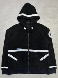 Undercover - Fall-Winter 2018 - Polar Fleece Space Odyssey Astronaut Zip Hoodie Size 3, fits Small to Medium Gently Used Good Condition Normal Sign of Use Flaws: Minor fade on the reflective tape. Dirts. Lints. No Inclusion Measurements in Inches(Laid Flat): Shoulders: 20” Width: 22” Sleeve Length: 24” Length: 25” Details: - Detailed with 'HAL 9000' embroidery, this fleece 'Space Suit' hoody from Undercover pays homage to a fictional character and the main antagonist in Arthur C. Clarke's Space Odyssey series. Made in Japan and trimmed with reflective taping throughout, this high-vis hoody is cut with raglan sleeves and is secured with a full length zip closure. 100% Polyester. Drawstring Hood. Raglan Sleeves. Zip Closure. Reflective Taping. Split Kangaroo Pocket. Ribbed Cuffs & Hem. Made in Japan.