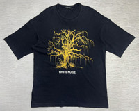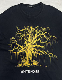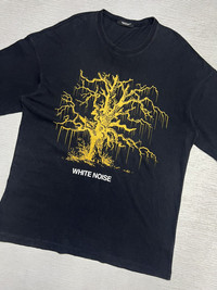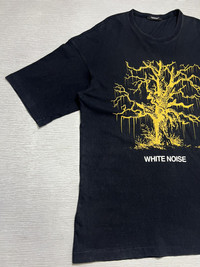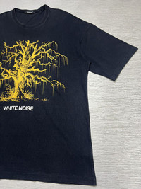 Undercover - Spring-Summer 2018 - White Noise - The Melt Jacksons T-Shirt Size 2, fits Medium Oversized Used Good Condition Normal Sign of Use *Flaws: Slightly faded. Washable Dirts. Lints. No Inclusion Measurements in Inches(Laid Flat): Shoulders: 25” Width: 24” Sleeve Length: 9.5” Length: 31.5” Details: - This cotton T-shirt by Undercover has flown in all the way from Japan. Flaunting drop-shoulder sleeves, this black garment stands out for its unique print on the front: a stylized tree featuring the inscription "WHITE NOISE" just below. On the back, the phrase "THE MELTED JACKSON" appears in white font along with the brand logo. With its slightly loose fit, this tee guarantees you'll be comfortable, yet stylish, wherever you go. Ribbed Neck. Short Sleeves. Oversized fit. Made in Japan. 100% Cotton.