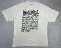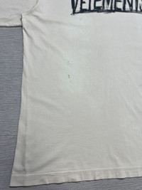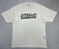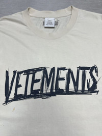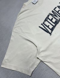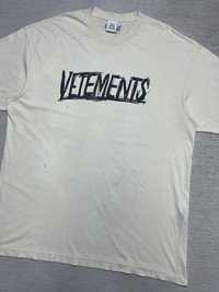 Vetements - World Tour Logo Oversized T-Shirt Size Extra Small fits Oversized Used Good Condition Normal Sign of Use *Flaws: Has washable dirts. Multiple Small holes. Stains. Bleeding. Has bleach stain. I accidentally mixed this shirt to other different shirts that is soaked in bleach that’s why it looks more like an off white compared to each original color which is Grey. Lints. No Inclusion Measurements in Inches(Laid Flat): Shoulders: 25” Width: 26” Sleeve Length: 11” Length: 34” Details: - Join Vetements on its world tour with this oversized tee. It’s oversized in a Grey colourway and detailed with branding scribbled on the front and a list of countries on the back, giving it a truly grungy look. •Color: Oyster Mushroom •Composition: 100% Cotton •Oversized •Ribbed Crewneck •Printed Branding •Made in Portugal