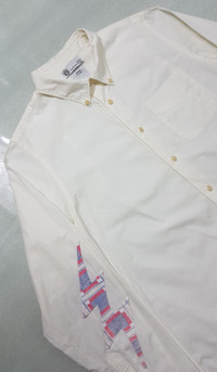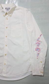 Visvim Spring-Summer 2017 Lungta B.D. Lightning Shirt Giza - Hiroki Nakamura and Visvim present the Lungta Lightning Shirt. Electrified bolts are a reoccurring theme through this seasons "Peerless" collection, featuring here on this shirts elbows, cut from blanket cloth. Cut from a Giza cotton and linen blend, this shirt showcases formal detailing such as a button down collar, a patch pocket to the chest and a curved hemline. An embroidered tag on the reverse of the collar completes the look. Tagged Size: 1 or Small Color: Ivory Condition: 9/10(Still in good condition. Please refer to all the detailed pictures I posted.) Material: Shell-88% Cotton,12% Linen. Componentry-100% Cotton. Made In: Japan SRP: $500 Measurements in Inches(Laid Flat): Shoulder Width: 16" Width(Armpit-to-Armpit): 20" Sleeve Length: 24.5" Length: 25” Manage your expectation and buy with confidence. Take your measurements and know your size because Returns/Refunds are not allowed. Come correct all the time. All sales are final. Item will be posted by express shipping (DHL Express) with good tracking record in 1-3 business days after received cleared payment. Expect it to reach you in 3-7 business days only after item been shipped. Please leave your Phone Number and Email Address on the NOTE while making a purchase. Please check my other listings and take advantage of combine shipping rates or special discount. Thank you very much for your visit.