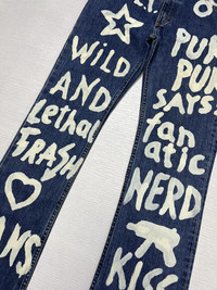 W< - A/W 1999 - Bleach Graffiti Flared Denim Jeans