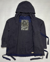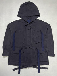 Ziggy Chen - Spring-Summer 2017 - Button Up Bondage Cotton/Linen Parka Tagged Size: 46 Color: Heather Grey/Navy Condition: 9/10 or better Material: Shell A: 100% Cotton. Shell B: 100% Linen. Lining: 100% Cotton. Made In: Shanghai Measurements in Inches(Laid Flat): Shoulder Width: 28” Width: 24” Sleeve Length: 21” Length: 29” Manage your expectation and buy with confidence. Take your measurements and know your size because Returns/Refunds are not allowed. Come correct all the time. All sales are final. Please leave your Phone Number and Email Address on the NOTE while making a purchase. Please check my other listings and take advantage of combined shipping rates or special discounts. Thank you very much for your visit.