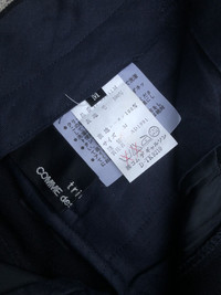 Vintage Tricot Comme des Garçons Wool Navy Pleated Trousers. AD1991, Size Medium fits to 29. Made in Japan. Gently used, good condition. ——————————————————— PLEASE READ BEFORE BUYING OR OFFERING. Check measurements below : Size : Measurement taken while laying flat. Waist: 78cm. Length: 93cm. Leg opening: 17cm. Please compare the measurement with your garment kindly all measurement are taken with the garment flat on the ground. Please leave your contact or phone number during purchase, phone number required for delivered proses. I apologize for some of the quality photos (photos might show a slightly different color than the true color of the item), feel free to ask for more specific photos, will try my best. This used & vintage items, so don't expected it to be like new conditions. No refunds so please read carefully the description. Thank you very much for your visit.