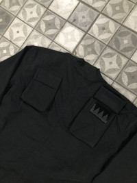 Kimono-style cargo shirt with military taste. Available four pockets. The 3D pocket attached to the back shoulder side is an accent. Size 4 fits X-Large. Made in Japan. Thirteen stars button detail. Cotton/nylon material blend. ——————————————————— PLEASE READ BEFORE BUYING OR OFFERING. Check measurements below : Size : Measurement taken while laying flat. Length: 75cm. Width: 60cm. Please compare the measurement with your garment kindly all measurement are taken with the garment flat on the ground. Please leave your contact or phone number during purchase, phone number required for delivered proses. I apologize for some of the quality photos (photos might show a slightly different color than the true color of the item), feel free to ask for more specific photos, will try my best. This used & vintage items, so don't expected it to be like new conditions. No refunds so please read carefully the description. Thank you very much for your visit.