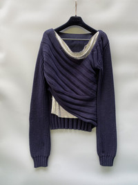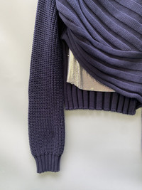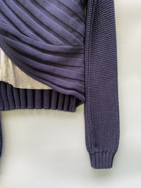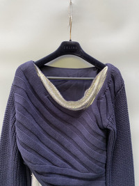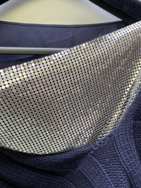 Yes 100% metal alloy Size medium Navy Knitted Extra long sleeves Made in China In excellent condition