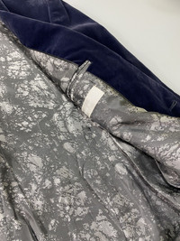Extremely rare piece from my collection. This is from fall 2011, the first season without alexander mcqueen himself, RIP to the genius. The jacket features a purple blue blend velvet material. Super smooth material. Double vent. Single button. Skull embossed buttons. Theres small scuff on the one of the sleeves, please check the last 3 pics. Made in italy. Tagged as 52R. Please check the actual measurements for fit. Measurements: Chest- 20” Shoulders - 17” Back Length-30” Sleeves length-24” Please check all details provided including measurements, pictures and descriptions for smooth transaction. Thanks.