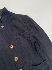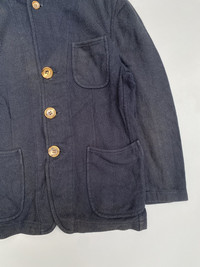 Made of 100% cotton Indigo Dyed Made in Japan Button down Pockets in front In good condition Small on tag Amazing piece Check pics and measurements