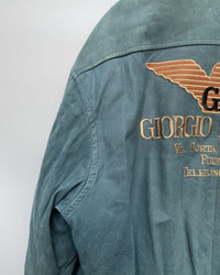 1980s- Giorgio Armani- Embroidered Logo Suede Leather Bomber