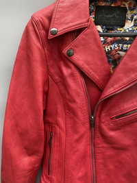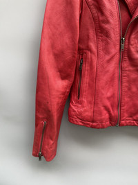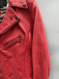 Features: - double rider leather jacket made of lamb leather, smooth good leather in red colorway - has distressing as seen on the sleeves and shoulder Condition: - in good condition -distressing on some parts Made in: China Season: 2014 AW Size on tag: small Best Fits: small Materials: -shell: leather -lining: rayon -padding/filling: n/a -hardware: ykk zipper Always be mindful of the fitting, size and measurements because every brand has different sizing and fitting. Kindly refer to the provided pictures, descriptions, and measurements for guidance. Thank you! Note: n/a means not applicable or not available n/i means not indicated on the tag