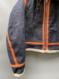 Condition: - 9/10 -excellent condition Features: - aviator jacket type with tape design on the shell -with neck belts -sherpa lining -cropped length and the sleeves are extra long Made in: Japan Year of Production: 2000s Size on tag: n/a Best Fits: XS to small womens Materials: -shell: cotton -lining: polyester/acrylic -padding/filling: n/a -hardware: ykk zipper Always be mindful of the fitting, size and measurements because every brand has different sizes and fitting. Kindly refer to the provided pictures, descriptions, and measurements for guidance. Thank you! Note: n/a means not applicable or not available