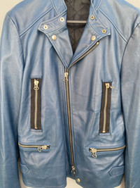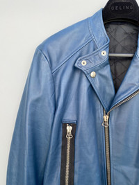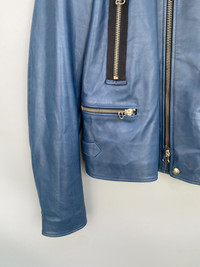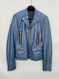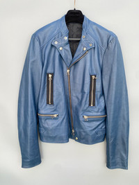 In excellent condition. The jacket features a cowhide in turquoise blue colorway. It has multiple zippers in front that features lampo zippers. Unfortunately the carelabels are no longer present. thehoarder11 thehoarder11 thehoarder11 Medium fit but be sure to check on the measurements and pictures for reference.