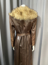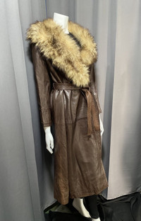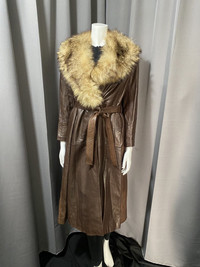 The jacket features a soft leather with fur hood. In good condition. Has signs of usage and oil marks due to age. Still presentable. No available care labels. Made in Spain. Size 42. Check pics and measurements