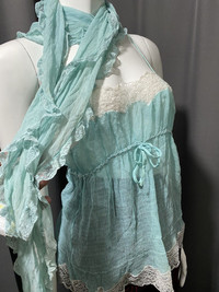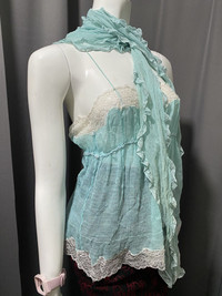 Archive Nina Ricci Lace Sheer Top with Scarf/Waist Belt